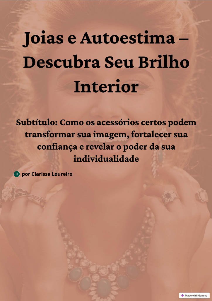 Com o e-book Joias e Autoestima, você vai finalmente se sentir poderosa, confiante e conectada com quem você realmente é.